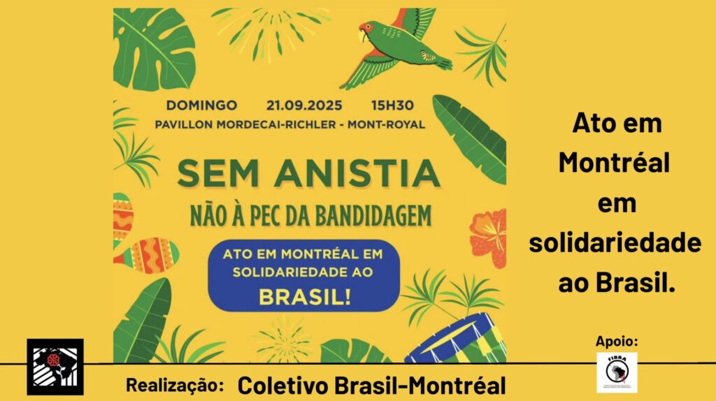 Ato em solidariedade ao Brasil, para mostrar que aqui em Montréal também nos posicionamos contra esses projetos absurdos.