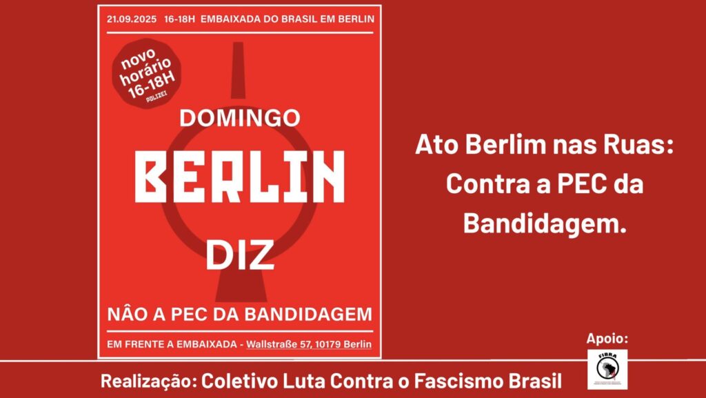 O Coletivo Luta Contra o Fascismo no Brasil em Berlim informa e convida para o Ato Berlim nas Ruas e Contra a PEC da bandidagem.
