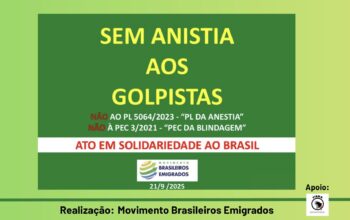 - 🇺🇸 Boston (ESTADOS UNIDOS): na frente do Consulado Brasileiro. 6pm (horário local);