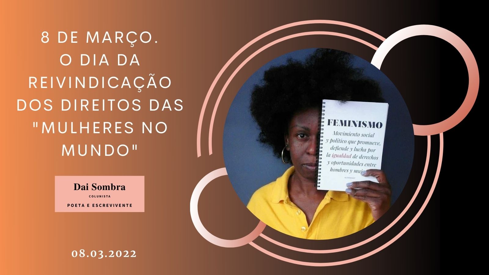 Dai Sombra Aisha: Produtora sócio-cultural, capoeirista, ativista antirracista descolonizadora, mulherista africana, poeta e escrevivente. Vive atualmente em Barcelona.